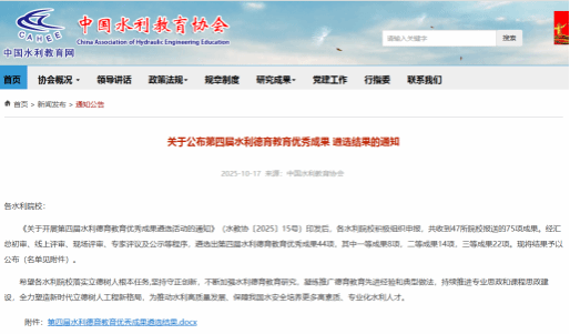 本次成果不仅是对我院水利德育教育工作成效的高度认可,更是对全院师生继续深耕水利德育教育领域的莫大鼓舞。未来,我院将以此为契机,进一步深化水利德育教育改革创新,持续总结和推广优秀的德育教育经验与做法,不断加强专业思政和课程思政建设,努力培养更多具备高尚道德情操、扎实专业素养,能够为推动水利高质量发展、保障国家水安全贡献力量的高素质水利专业人才,为我国水利教育事业的蓬勃发展注入更多活力。