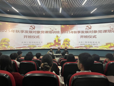为深入学习贯彻习近平新时代中国特色社会主义思想和党的二十大精神,切实把好党员发展的“政治关”、“思想关”和“质量关”,引导入党发展对象从思想根源上坚定共产主义远大理想、明晰党员使命担当,10月20日下午,水利工程学院举行2025年秋季入党发展对象培训班开班仪式。学院党总支书记刘儒博、学工办主任任杰、党务秘书薛敏及60余名入党发展对象参加了本次活动,开班仪式由任杰主持。