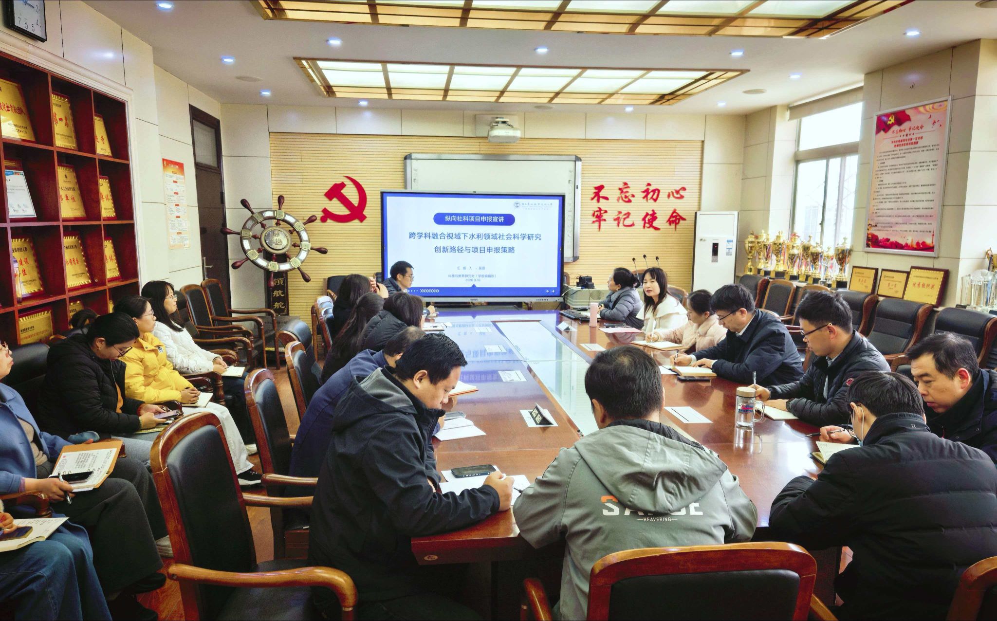 为进一步提升我院教师科研项目申报能力,推动自然科学与人文社会科学的深度交叉融合,3月16日,水利工程学院在天润楼122会议室举办了“跨学科融合视域下水利领域社会科学研究创新路径与项目申报策略”专题讲座,讲座邀请了科技与教育研究处吴薇老师主讲,水利工程学院副院长郭旭新主持会议,30余名教师参加会议。